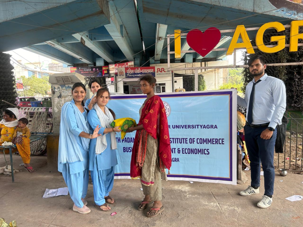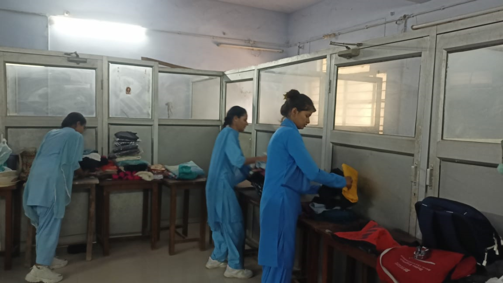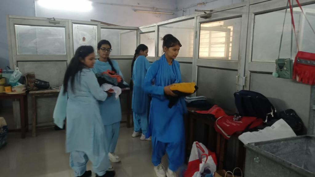 Preparation by students before cloth distribution.